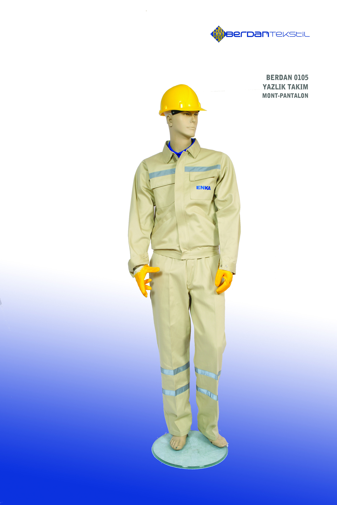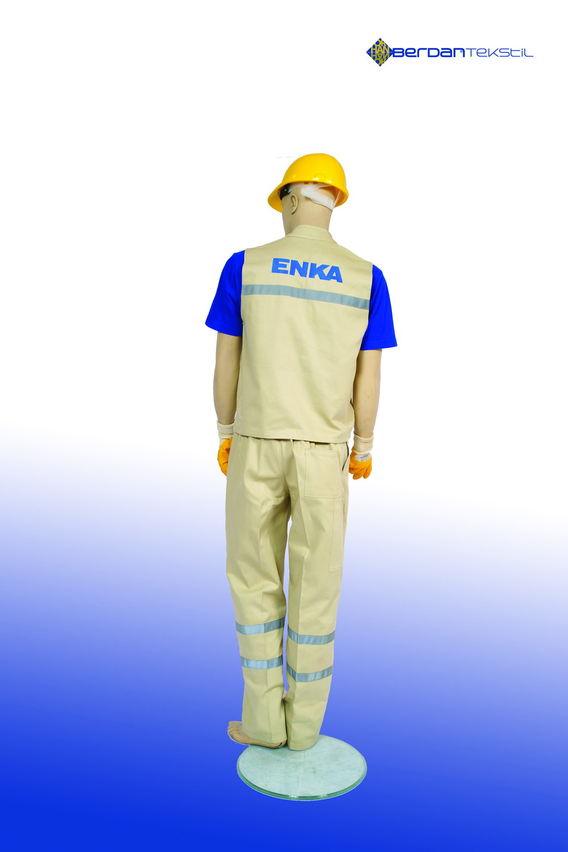 ENKA'nın iş kıyafetlerinde yazın 100% pamuk 16/12 pamuk gabardin kumaş, kışın ise yüksek gramajlı % 65 polyester - %35 pamuk gabardin kumaş kullanılıyor. Kışın montların içine 250gr/m2'lik elyaflı kalın kapitone astar kullanılıyor.